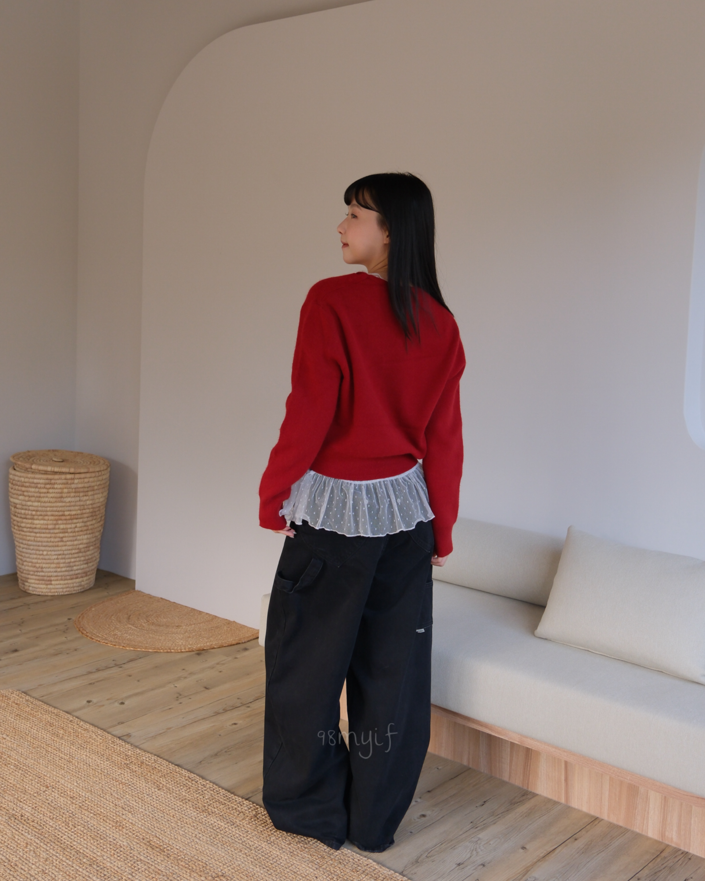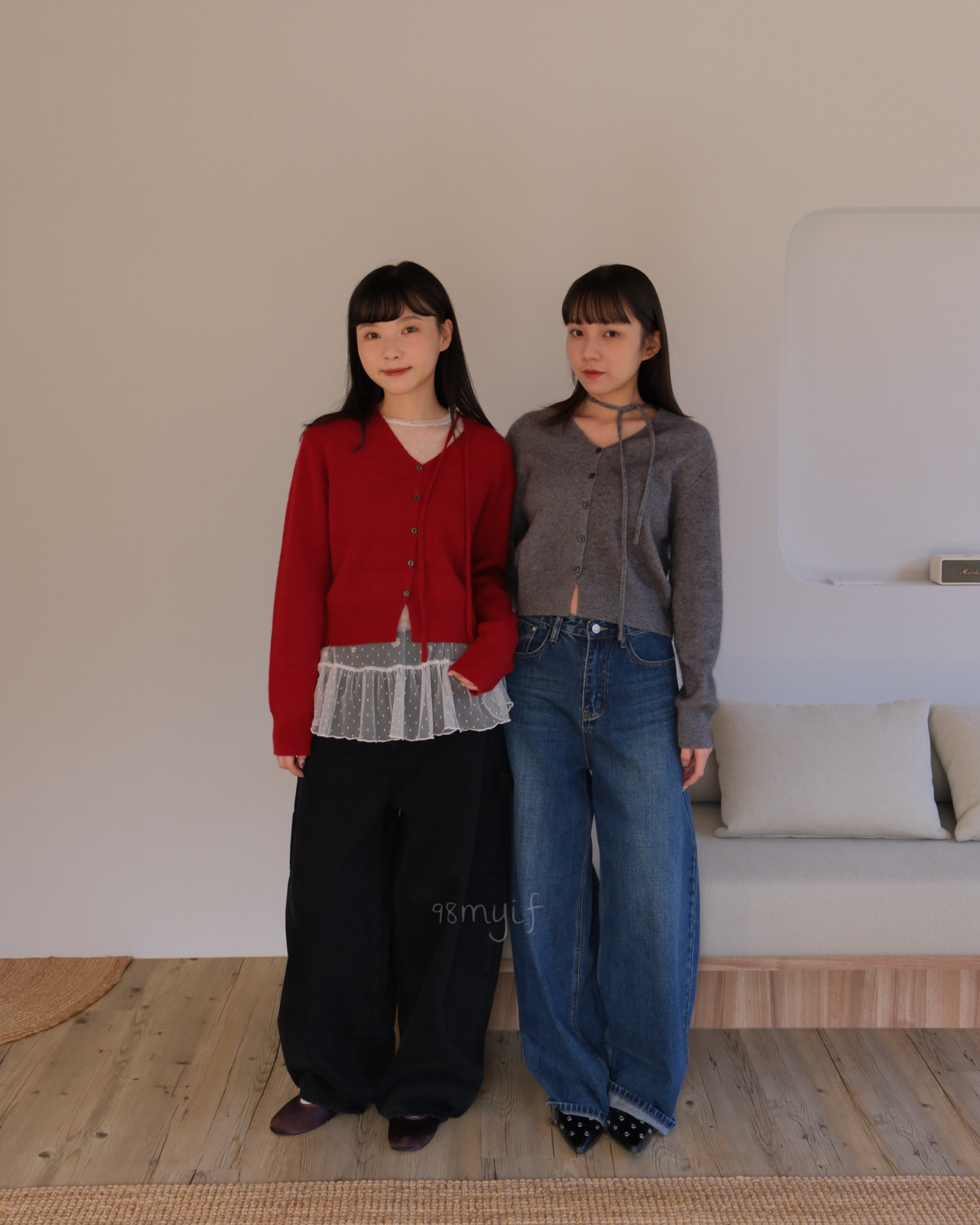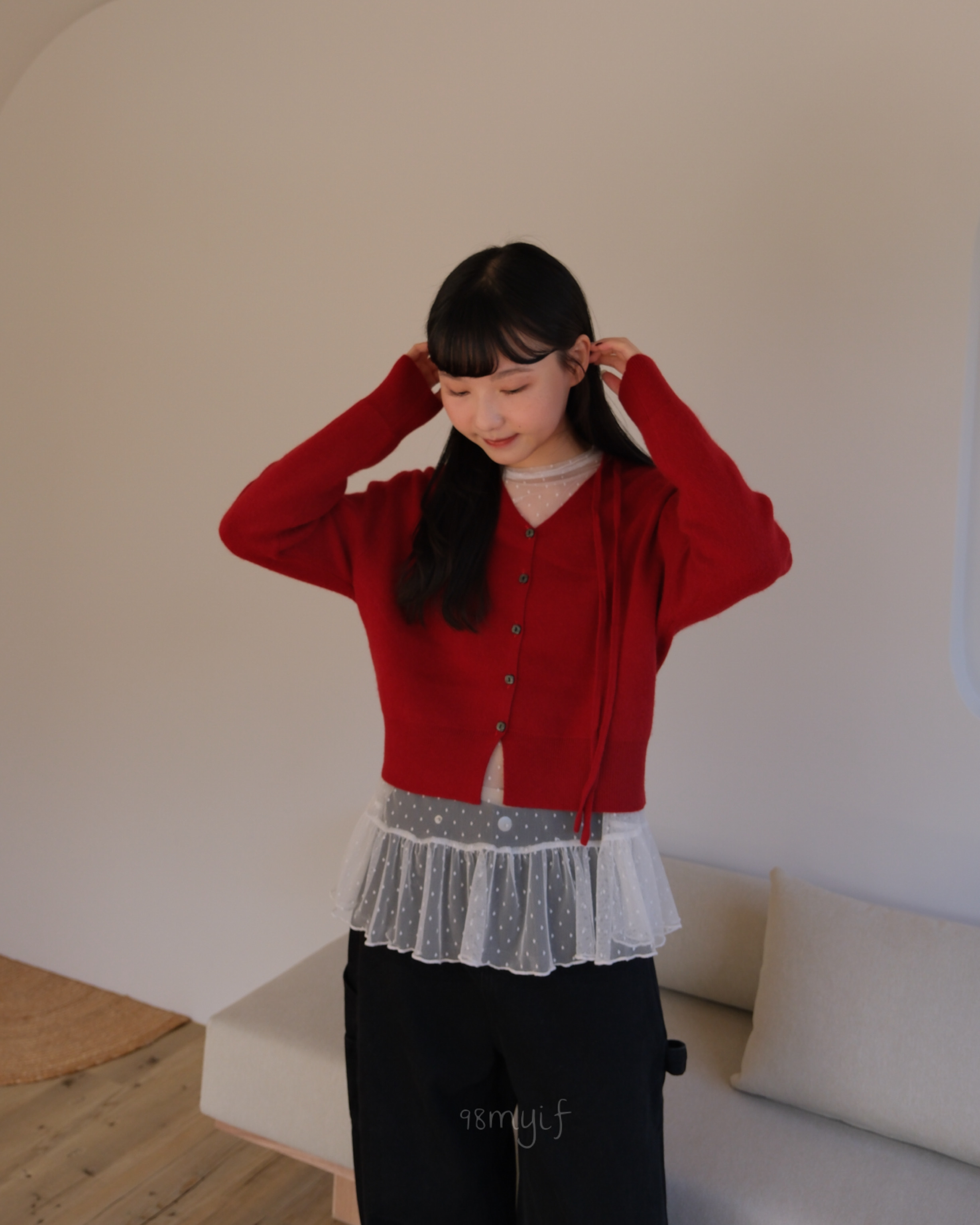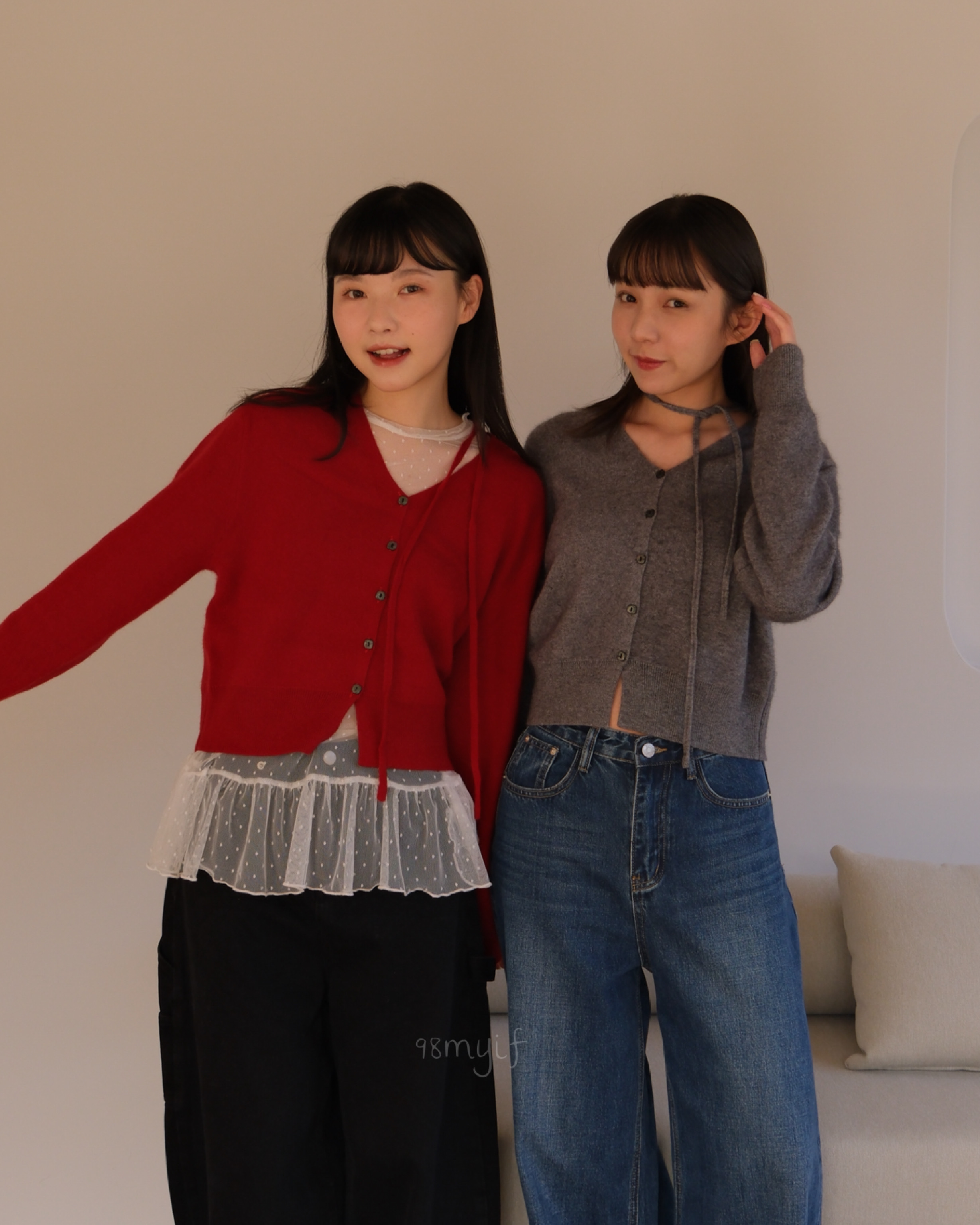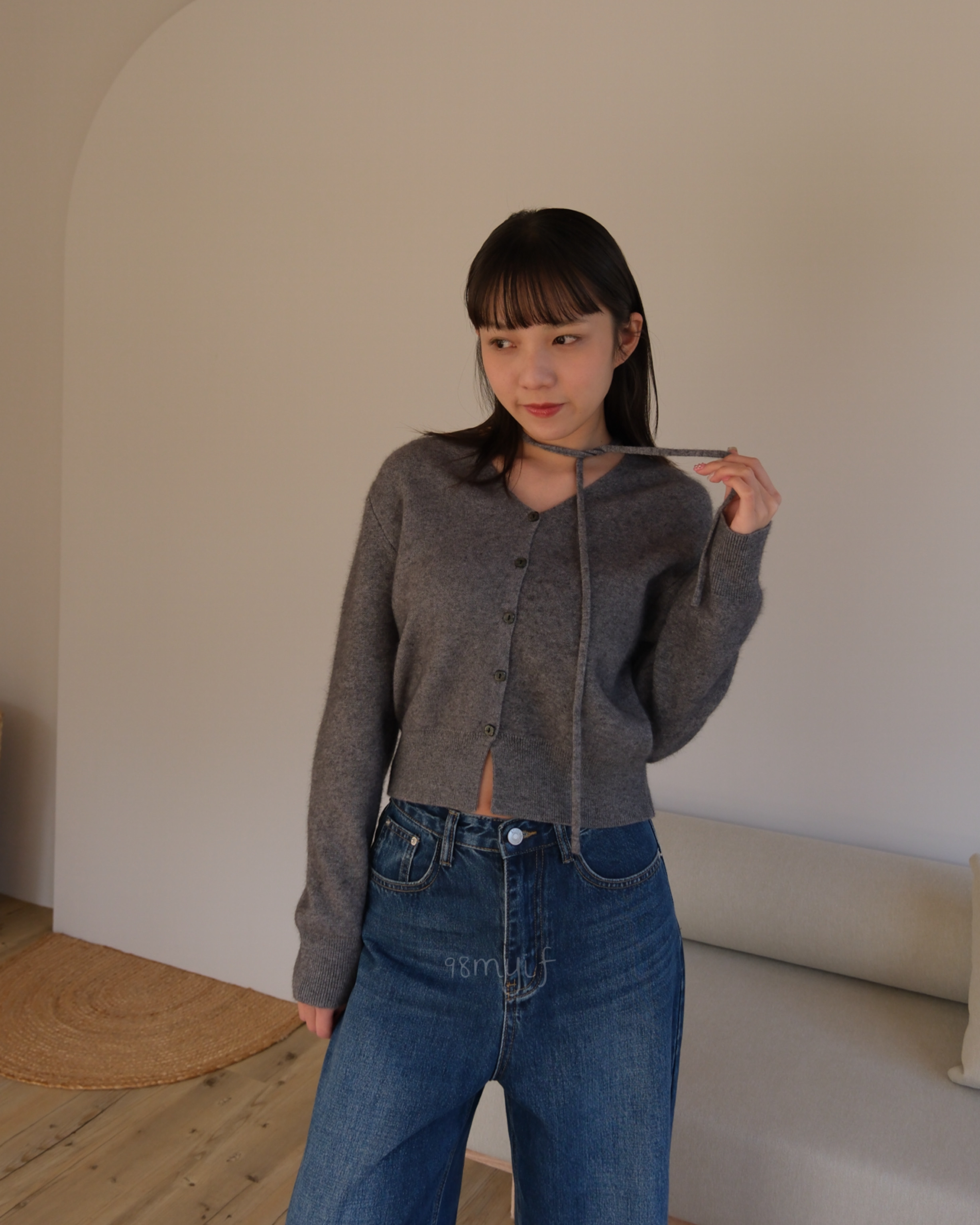F04 v領綁帶排扣羊毛毛衣